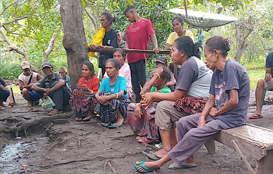 Warga Nangahale sedang mengikuti rapat pada 16 Maret 2025 merepons rencana PT Krisrama yang melakukan aksi “pembersihan” di lahan yang masih menjadi konflik dengan mereka. (Dokumentasi Floresa)