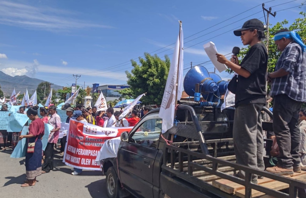 Aksi unjuk rasa di Sikka pada 24 September 2025 memperingati Hari Tani Nasional. (Dokumentasi Floresa)