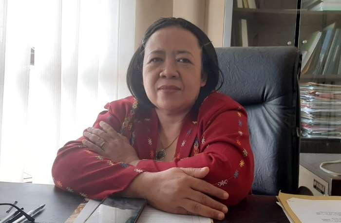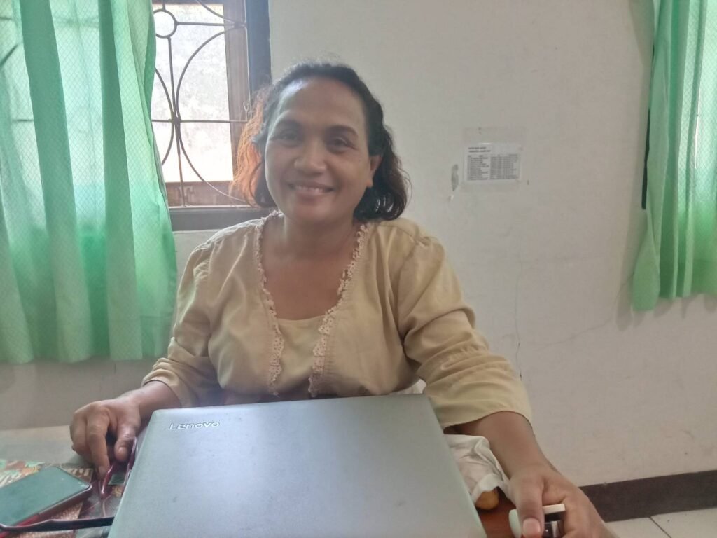 Penjabat Fungsional Epidemiologi Kesehatan, Dinas Kesehatan Kabupaten Flores Timur, Maria Goreti Barelinda saat diwawancarai Floresa di ruang kerjannya pada 28 Agustus 2025. (Dokumentasi Floresa)
