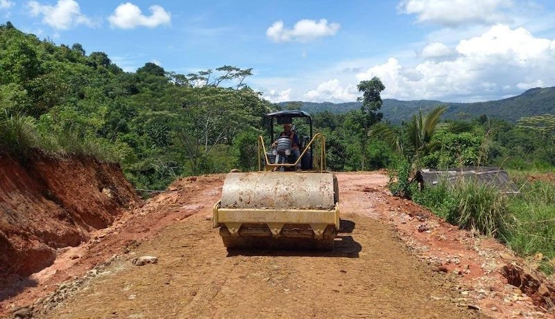 Pantauan Floresa, kerikil berserakan, sementara rumput liar tumbuh hingga di tengah jalan yang telah digusur, namun belum diaspal.