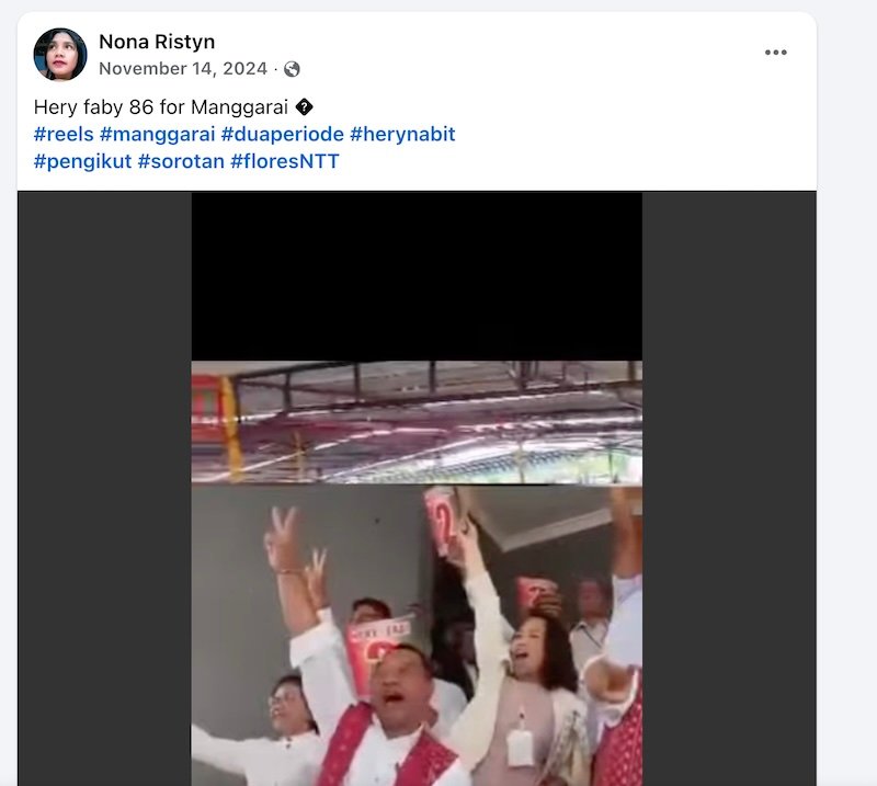 Dalam unggahannya pada 14 November 2024 misalnya, ia menulis “Hery faby 86 for Manggarai” beserta cuplikan video para pendukung Nabit-Abu.
