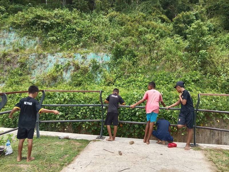 Di bagian barat embung itu, Floresa menemui lima anak yang sedang memancing ikan.